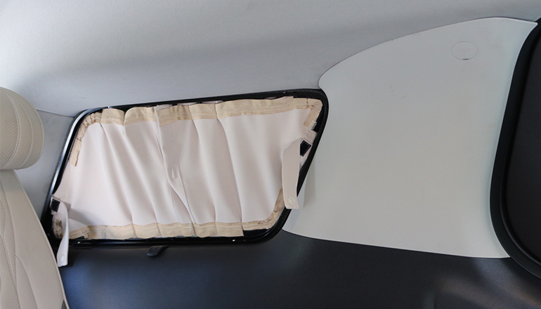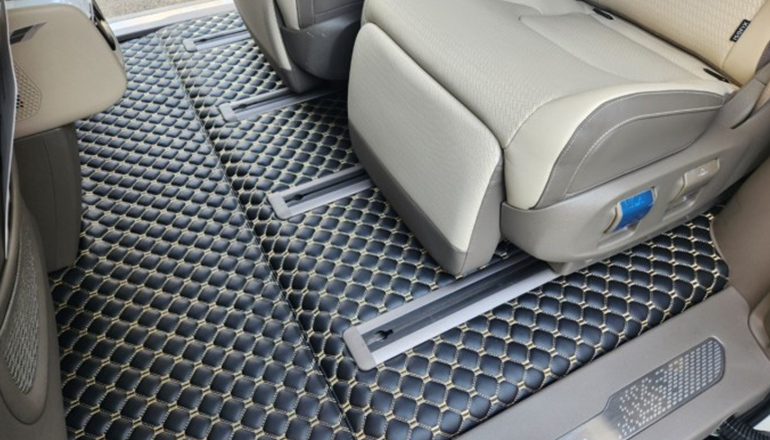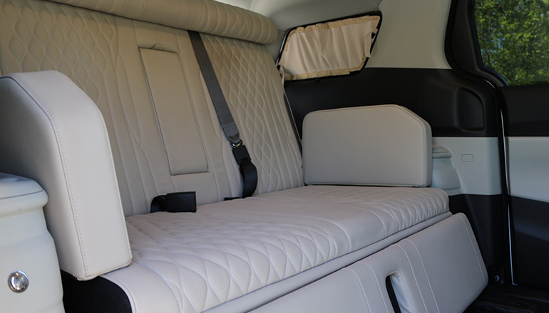 Luxury leather seats that can convert into a bed for a comfortable drive and rest during camping.