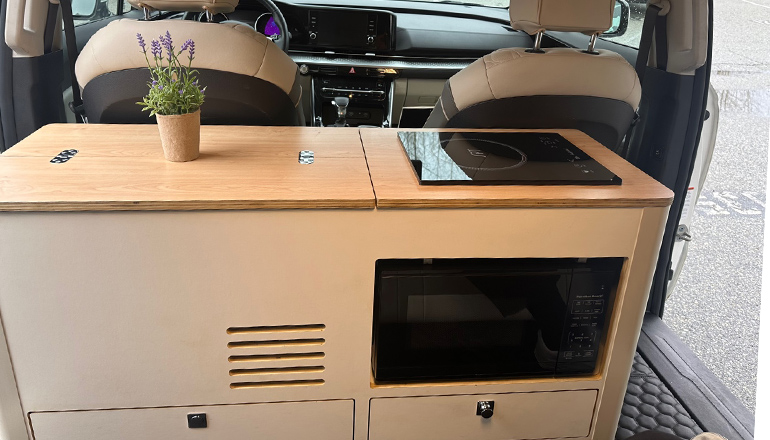 The versatile Daily Camper Van combines everyday use with camping capabilities, built on a 3500cc Kia Carnival base.